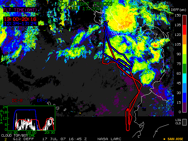 GOES-12 DEFF image (17 July 2007 16:45 UTC) with aircraft flight tracks