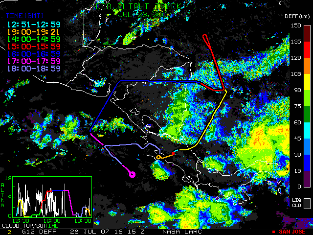 GOES-12 DEFF image (28 July 2007 16:15 UTC) with DC8 flight tracks